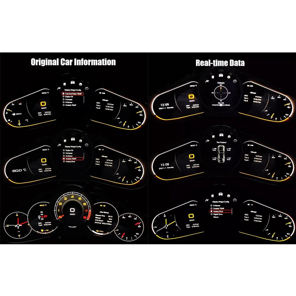 Επιπλέον, παρέχει πληροφορίες σχετικά με το όχημα και πιθανά προβλήματα (π.χ. cruise control, οδόμετρο και ταχύτητα, πίεση ελαστικών, κατανάλωση καυσίμων, θερμοκρασία, λάθη κινητήρα κλπ.).