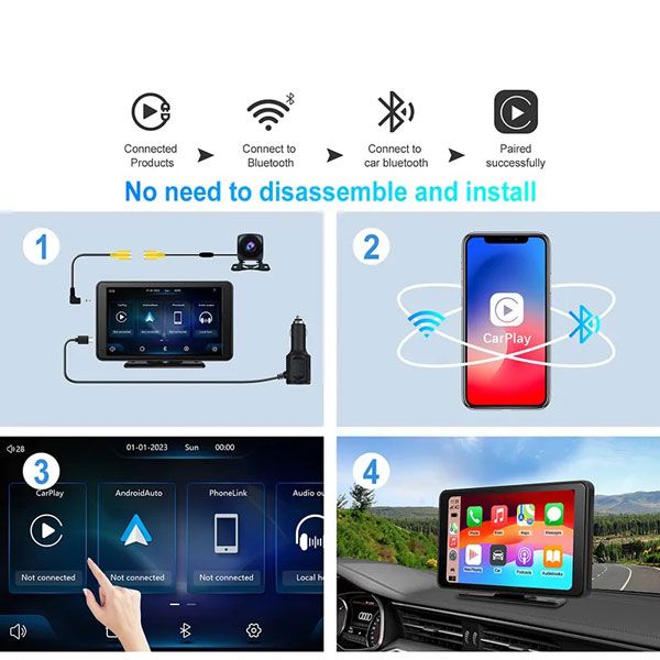 7 Inch Large Display, Supports CarPlay & Android Auto, Transform Your Car into a Smart Hub