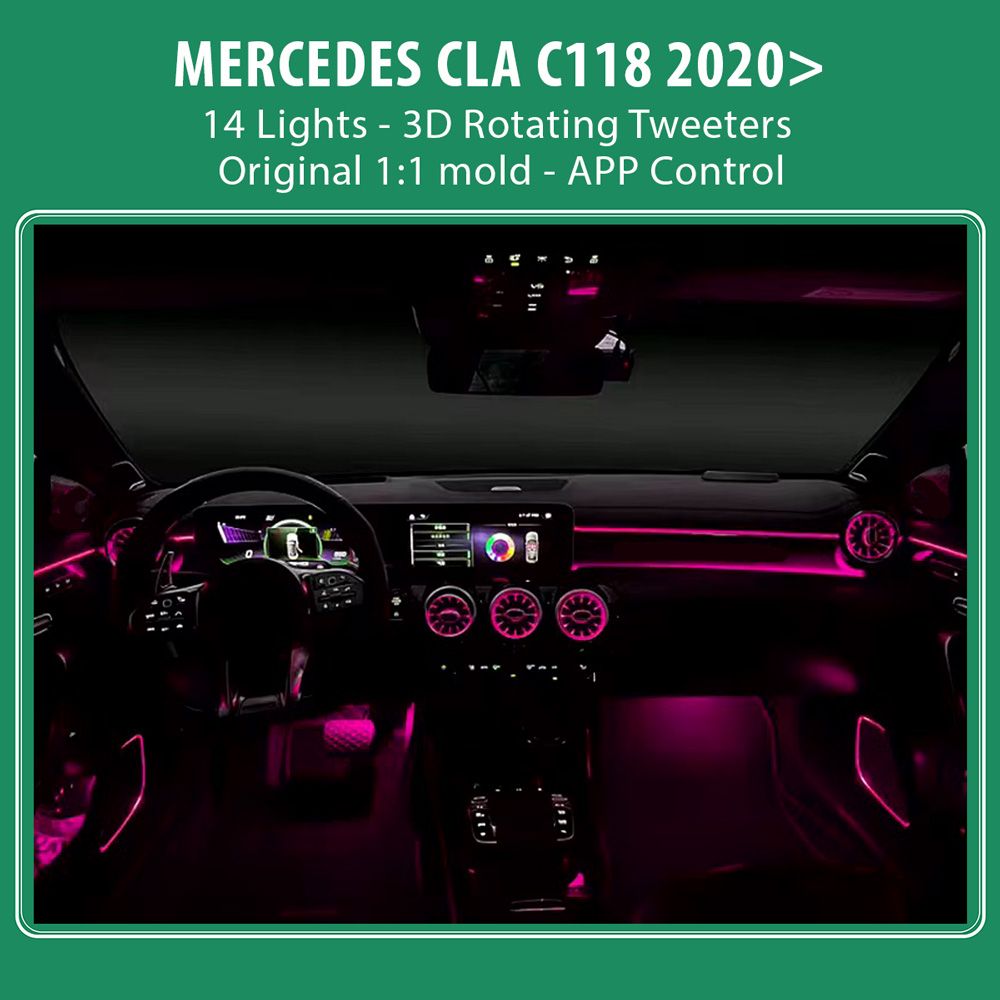 - 36 light sources (front/rear footwell 4 lamps, saddle 4 lamps, center cup holder 1 lamp, center armrest box 1 lamp, upper instrument 2 lamps, lower instrument 3 lamps, four door pulls 4 lamps, four door storage pockets 4 lamps, front left/right door profile 2 lamps, front air vents 5 lamps, rear air vents 2 lamps, backrest 4 lamps).