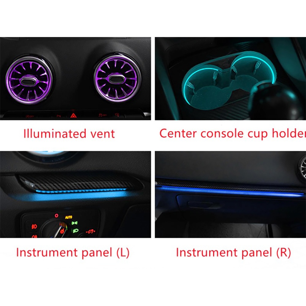 - Standard 25pcs Dynamic Lights (4 door handle lights, 4 door outline lights, 4 door storage box lights, 4 footwell lights, 2 water cups, 3 central control, 4 air outlets).