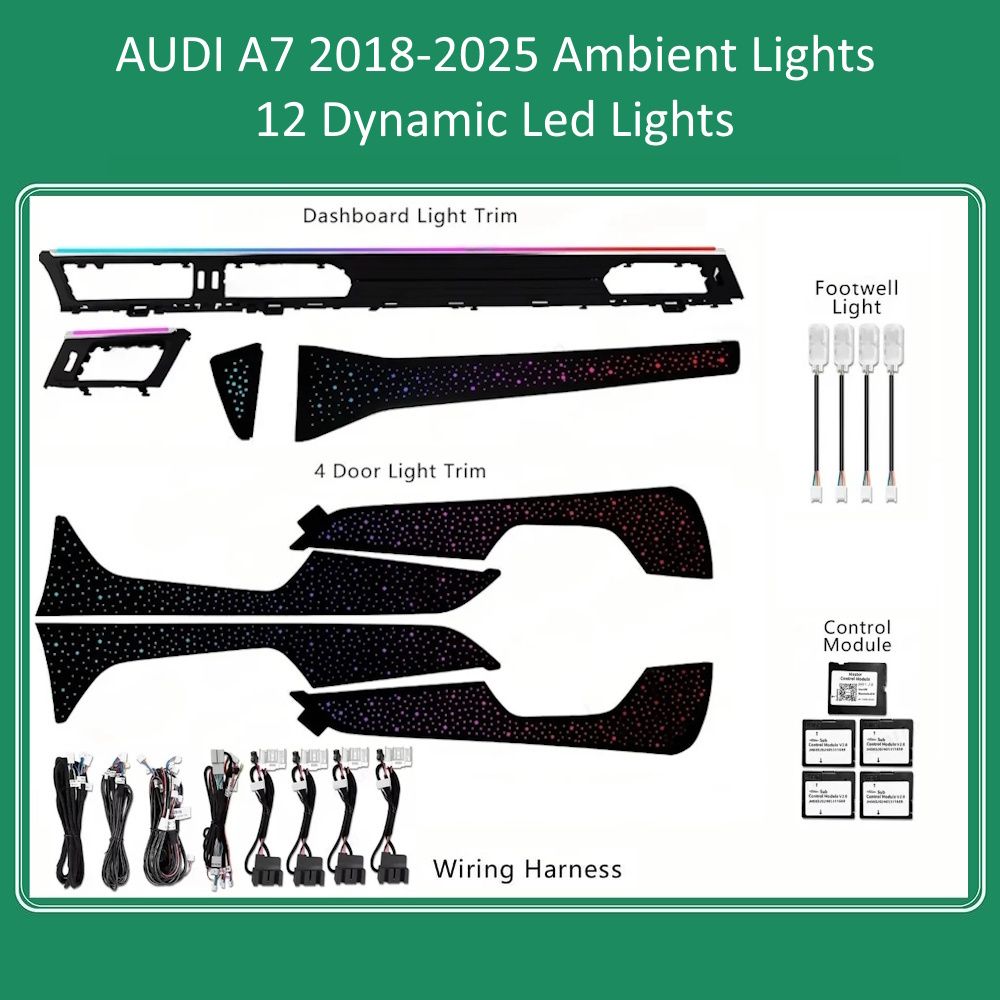 - Standard 20 Dynamic lights (4 door handle lights, 4 door lights, 4 door storage box lights, 4 footwell lights, 2 central control light,2 saddle light).