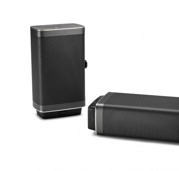 - Detachable, battery-powered wireless surround speakers