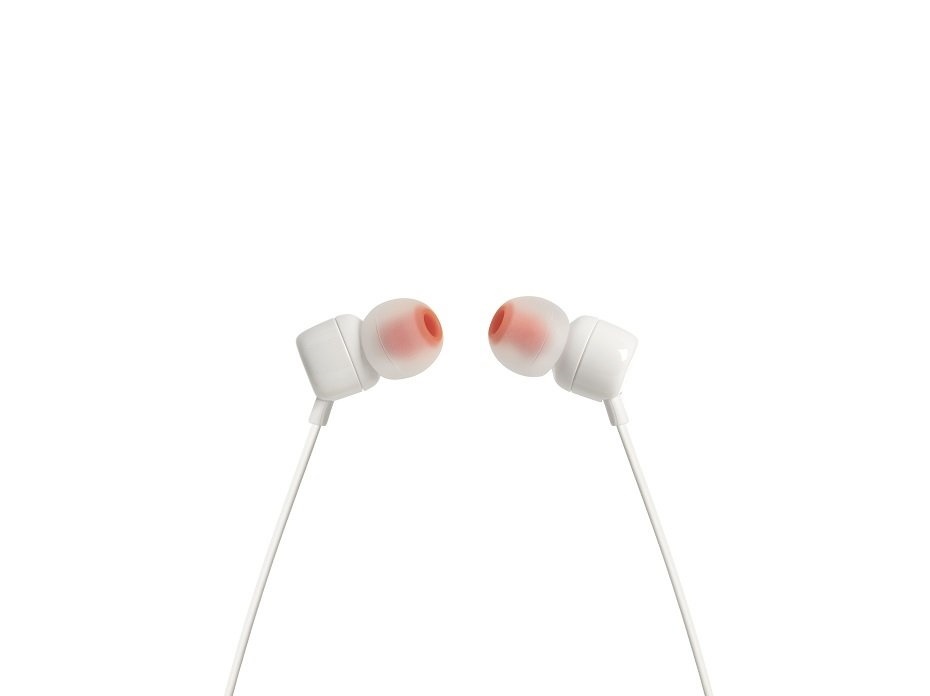 Introducing JBL T110 in-ear headphones. They’re lightweight, comfortable and compact. Under the durable earpiece housing, a pair of 9mm drivers punch out some serious bass, reproducing the JBL Pure Bass sound you’ve experienced in concert halls, arenas and recording studios around the world. In addition, the single-button remote on a tangle-free flat cable lets you control music playback, as well as answer calls on the fly with a builtin microphone. Making the JBL T110 your everyday companion for work, at home and on the road.